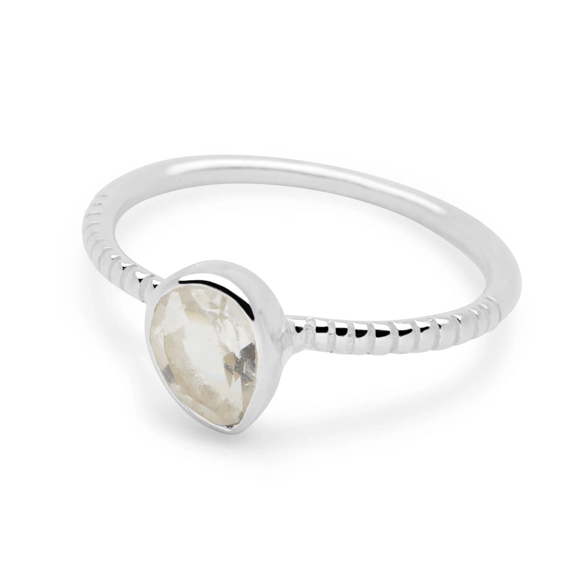 A versatile piece, this clear quartz ring looks elegant on its own or when worn as part of a set.