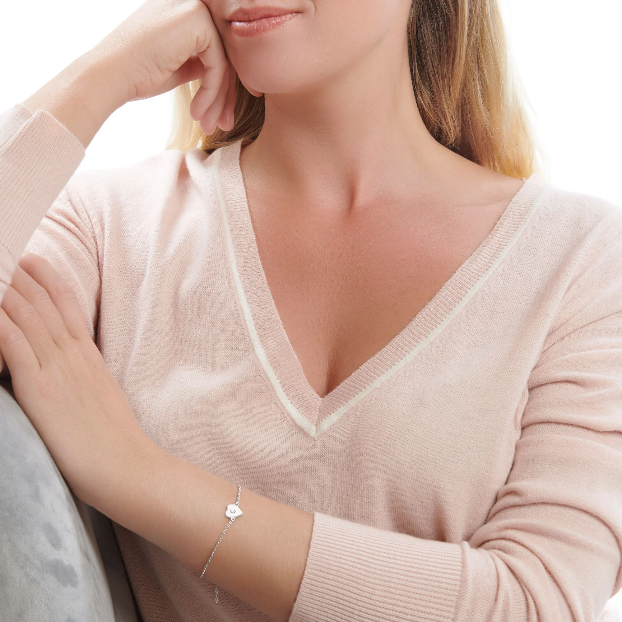 A delicate bracelet with a silver heart at the centre which can be personalised with an initial of your choice.