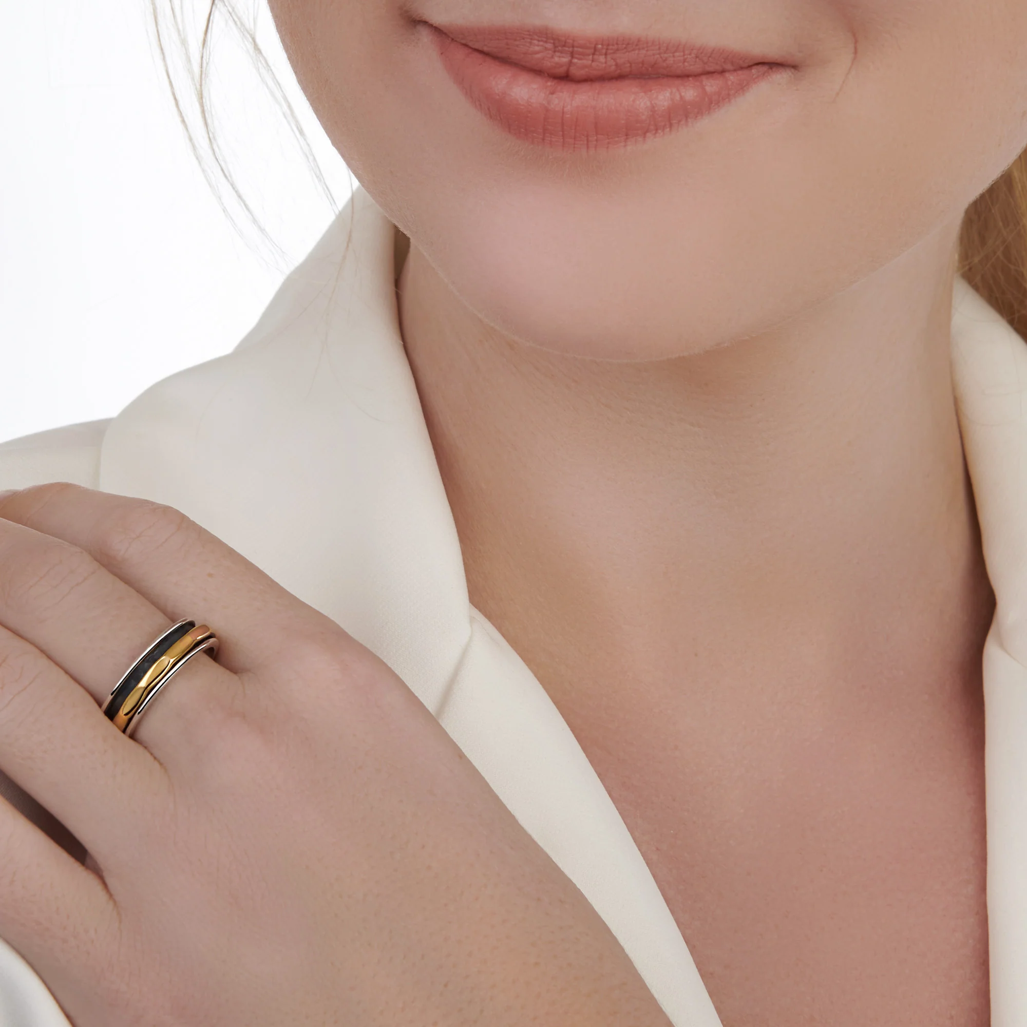 An exquisite fusion of sterling silver and solid brass, crafted to spin and move freely around your finger.